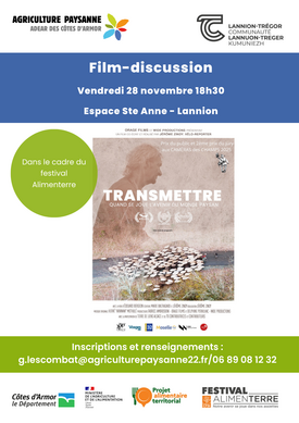 Gratuit sur inscription auprès de Gaëlle Lescombat 06 89 08 12 32 ou g.lescombat@agriculturepaysanne22.fr