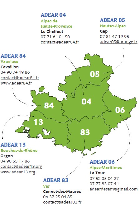 Voici les contacts de notre équipe salariée et du réseau des ADEAR de la région