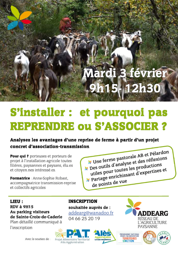 Inscription et information : addearg.mc@jeminstallepaysan.org / 04 66 25 20 19