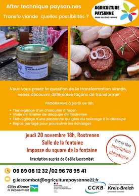 Gratuit sur inscription par mail g.lescombat@agriculturepaysanne22.fr ou au 06 89 08 12 32