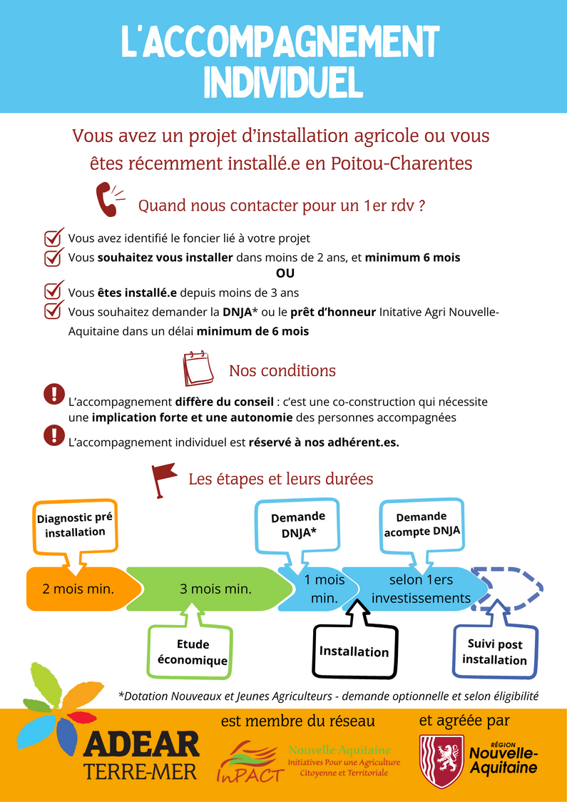 Pour connaître nos tarifs et modalités d’accompagnement : adearterremer.installation@gmail.com