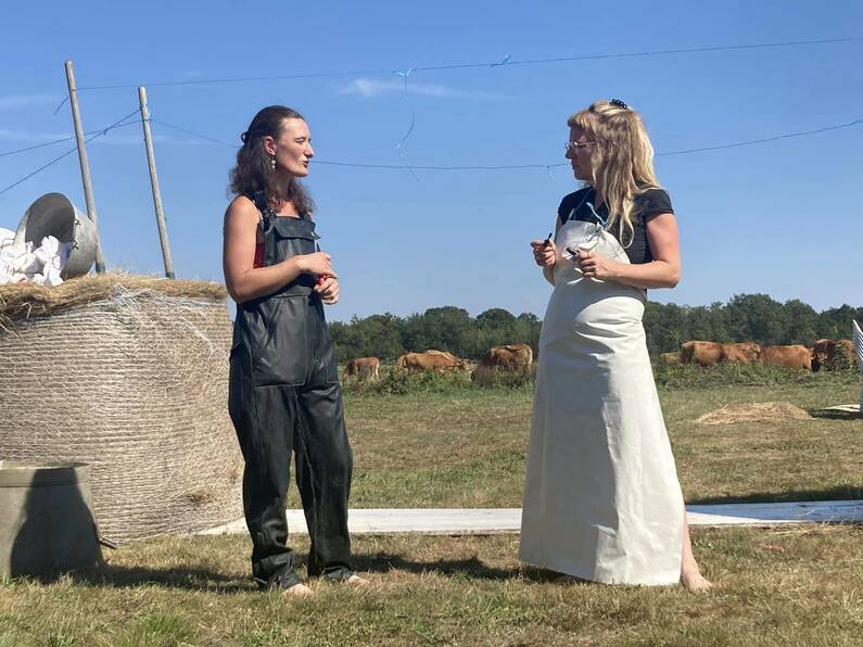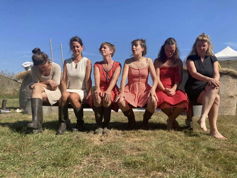 Autre temps fort de la journée, le théâtre des Payselles. Ce spectacle met en scène six femmes témoignant de leur vie d’agricultrice. Installées dans le Berry, elles évoquent avec humour leurs parcours, leurs engagements mais aussi leur lien avec la terre et le monde la paysannerie. Bottes, habillées en paysannes, assises au milieu des bottes de paille, Justine, Mélody, Anais, Françoise et Estelle démontent le machisme ambiant dans le monde agricole.