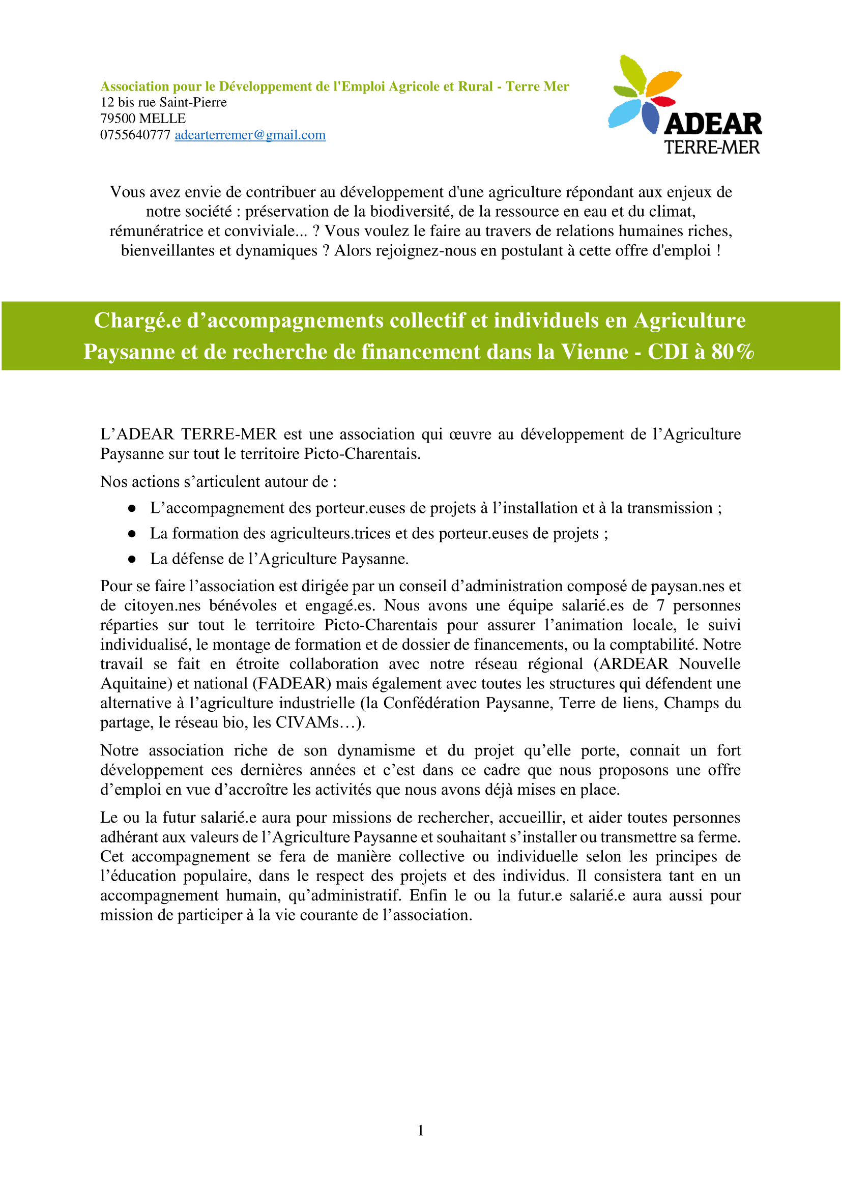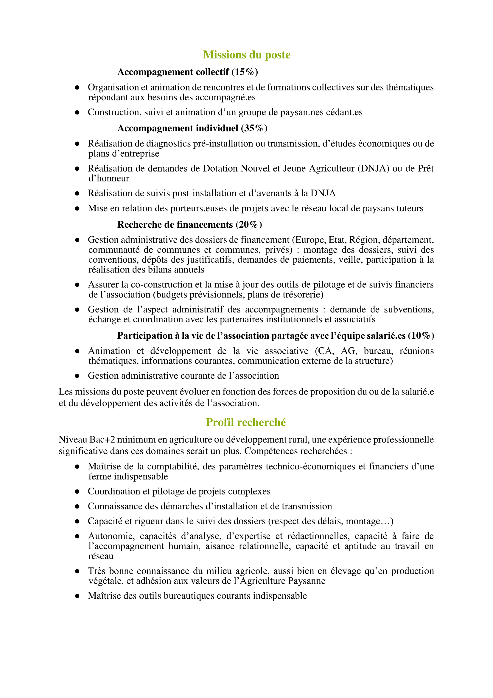 Nous recrutons notre futur.e chargé.e d’accompagnements collectif et individuels en Agriculture Paysanne et de recherche de financement dans la Vienne - CDI à 80%