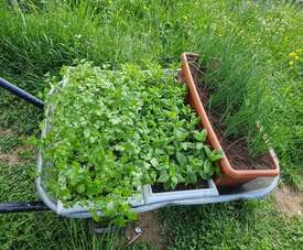 De plus, je vends sur les marchés de producteurs passionnés et nous avons aussi une association pour organiser des marchés festifs. En mai et juin c’est aussi la période de plantation aux jardins donc ça sera un moment de préparation de terrain, paillage, semis en pleine terre et plantation des plants produis.
