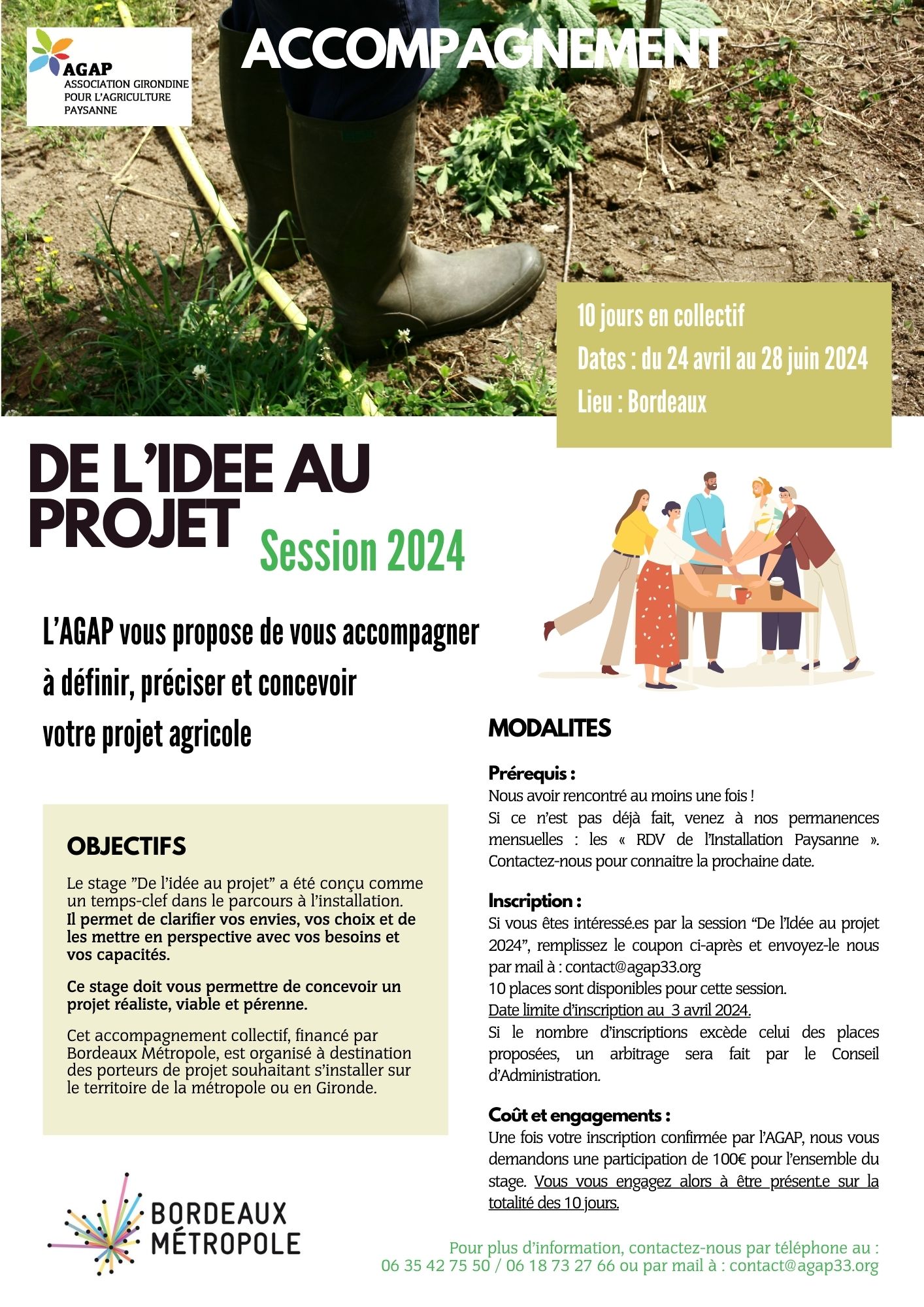 L'AGAP ouvre les inscriptions pour la prochaine session d'accompagnement à l'installation "De l'idée au projet 2024", qui se déroulera sur la Métropole de Bordeaux.