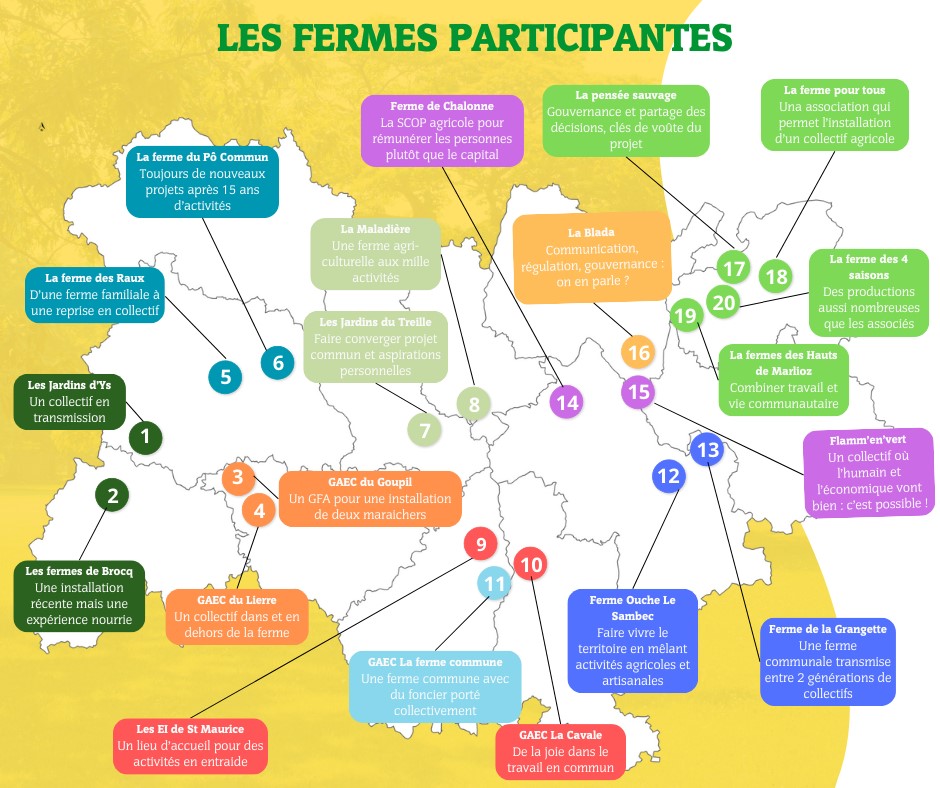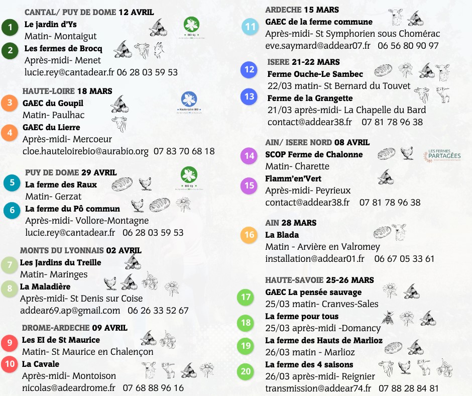 Ainsi, nous proposons 20 visites de fermes collectives à destination des porteurs de projet dans toute la région Auvergne Rhône-Alpes, entre le 15 Mars et le 29 Avril. Vous trouverez le programme détaillé en PJ.