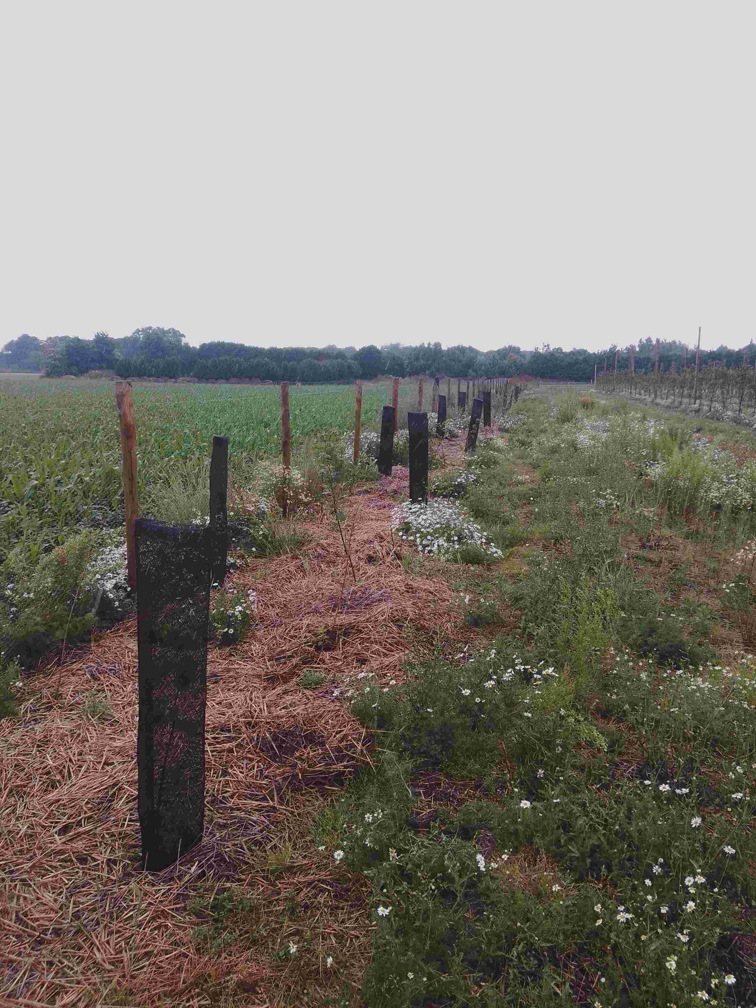 Plantation d’une haie brise-vent et refuge de biodiversité autour d'un verger chez Bastien et Perrine à L'abeille au Fruit, Campigneulles-les-Grandes (62170)