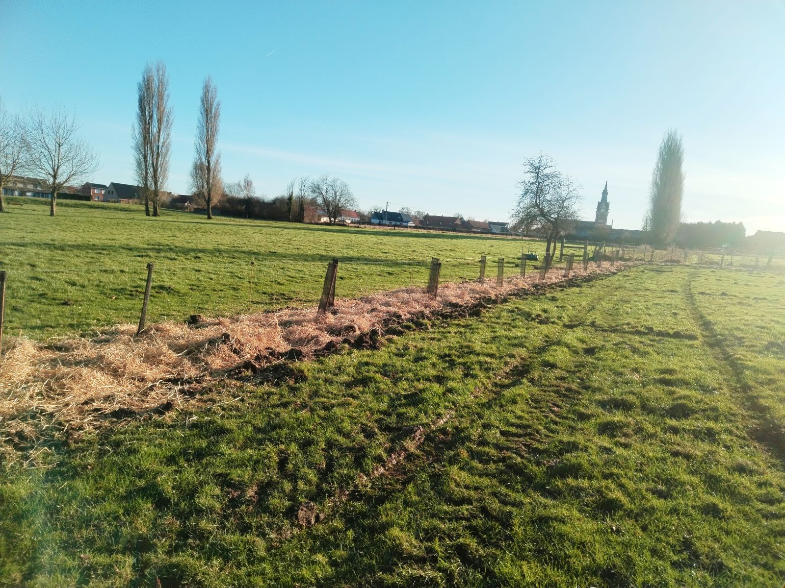 Plantation d’une haie refuge de biodiversité, mellfière et protection du troupeau pour couper une prairie en deux paddock à Hinges (62232)