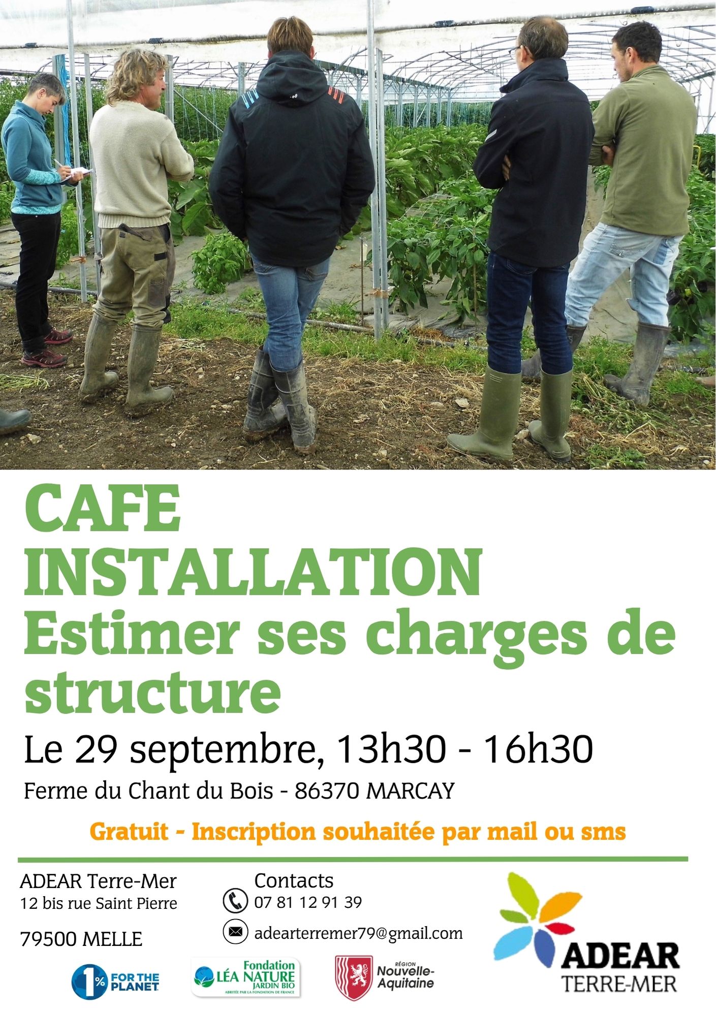 Gratuit - inscription souhaitée par mail ou sms : 07 81 12 91 39 ou adearterremer.installation@gmail.com