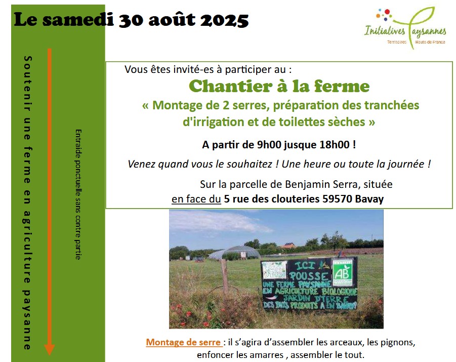 L’inscription est obligatoire par e-mail à n.degroote@initiatives-paysannes.fr jusqu’au vendredi 29 /08.