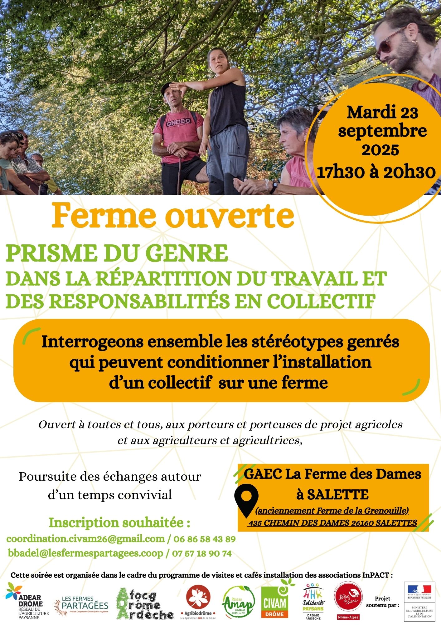 Une ferme ouverte organisée par Inpact Drôme autour des questions de prisme de genre dans la répartition du travail et des responsabilités en collectif.