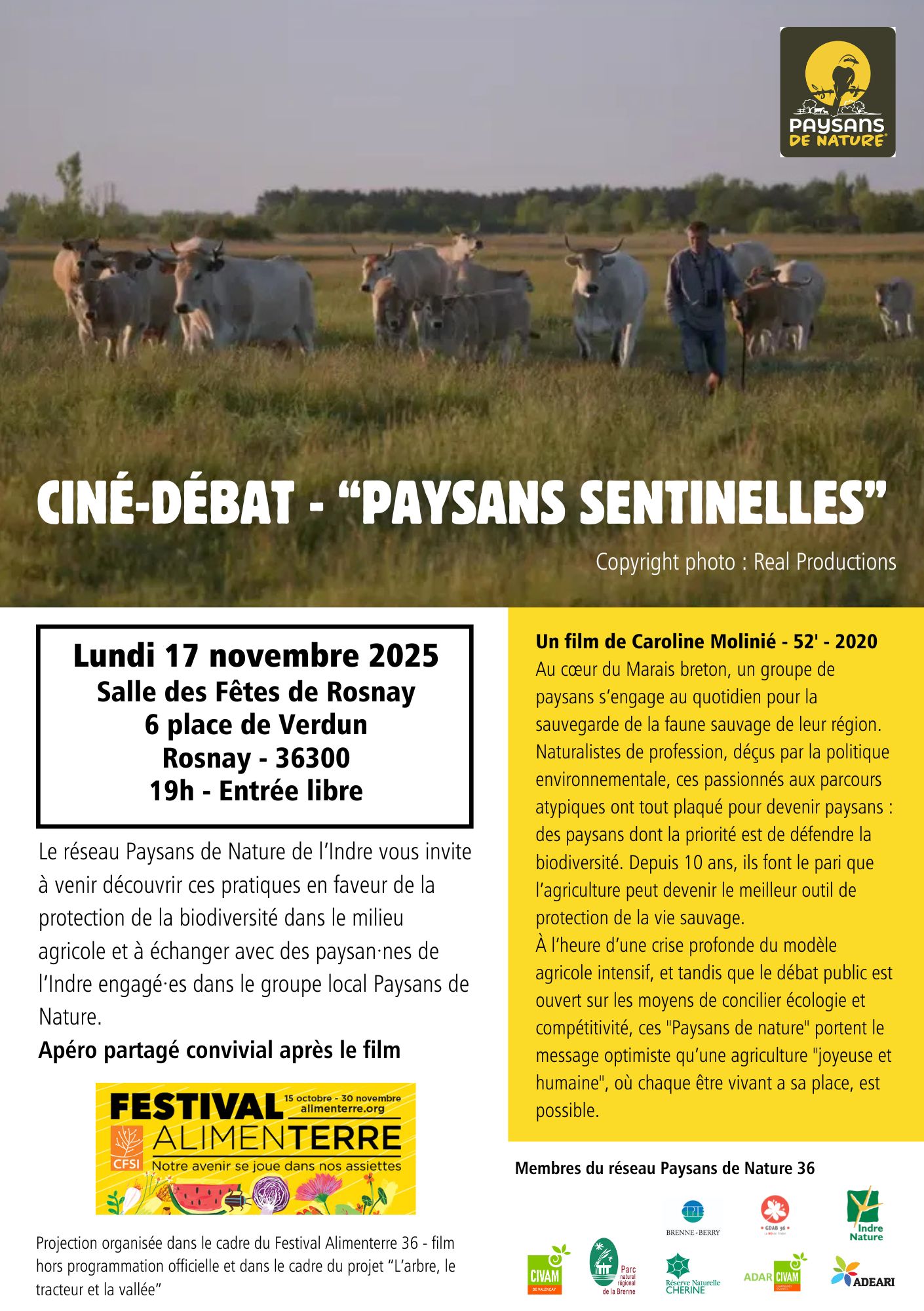 agricole et à échanger avec des paysan·nes de l’Indre engagé·es dans le groupe local Paysans de Nature. Apéro partagé convivial après le film