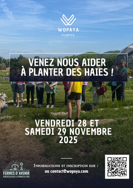 Nous proposons un chantier de plantation d’une haie diversifiée sur la ferme pour favoriser la biodiversité, stocker du carbone et protéger les végétaux du vent. La plantation se fait sur un terrain déjà préparé et avec de jeunes plants.