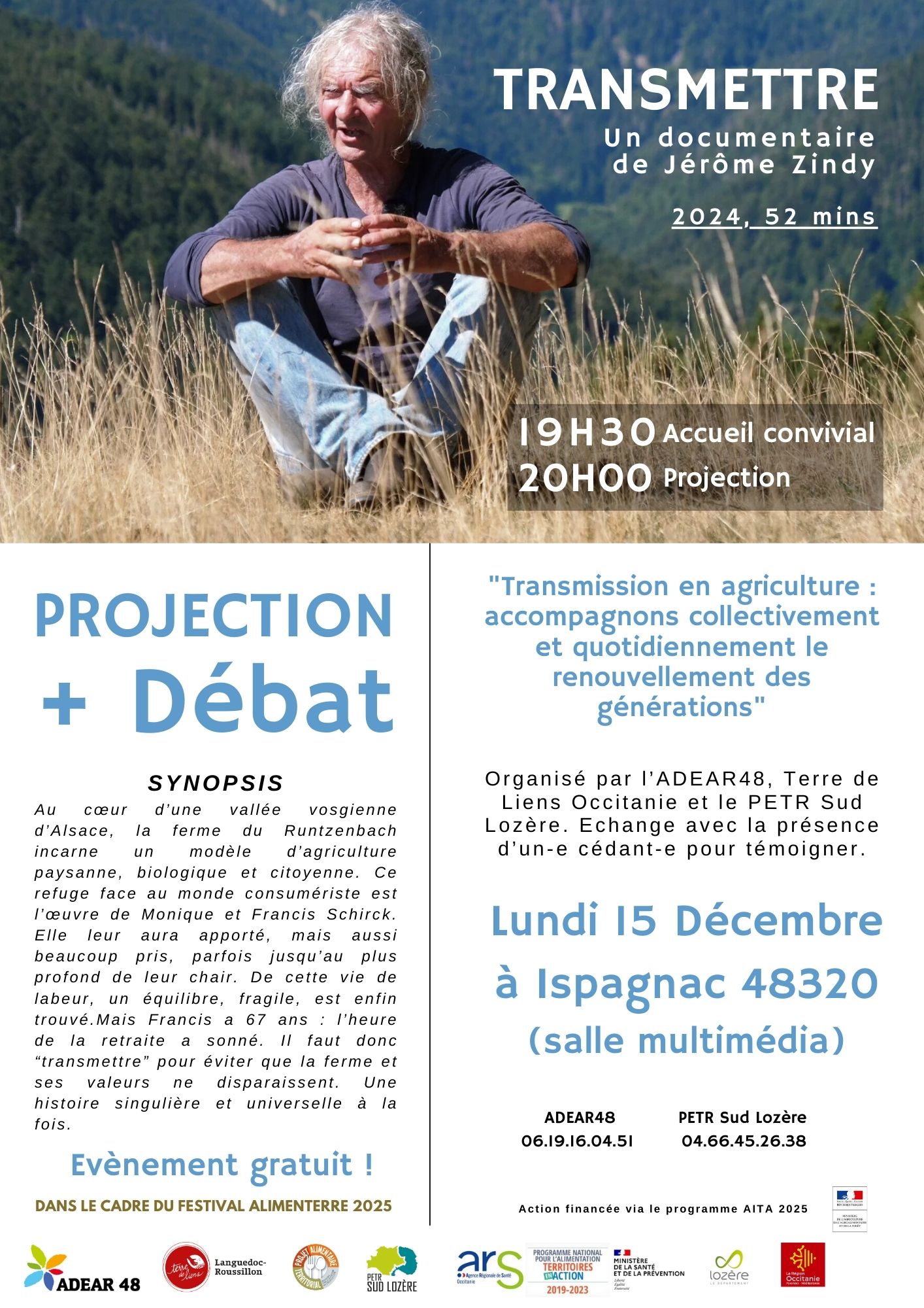 Projection débat "Transmettre" _ ADEAR48 et Terre de Liens à Ispagnac (48)