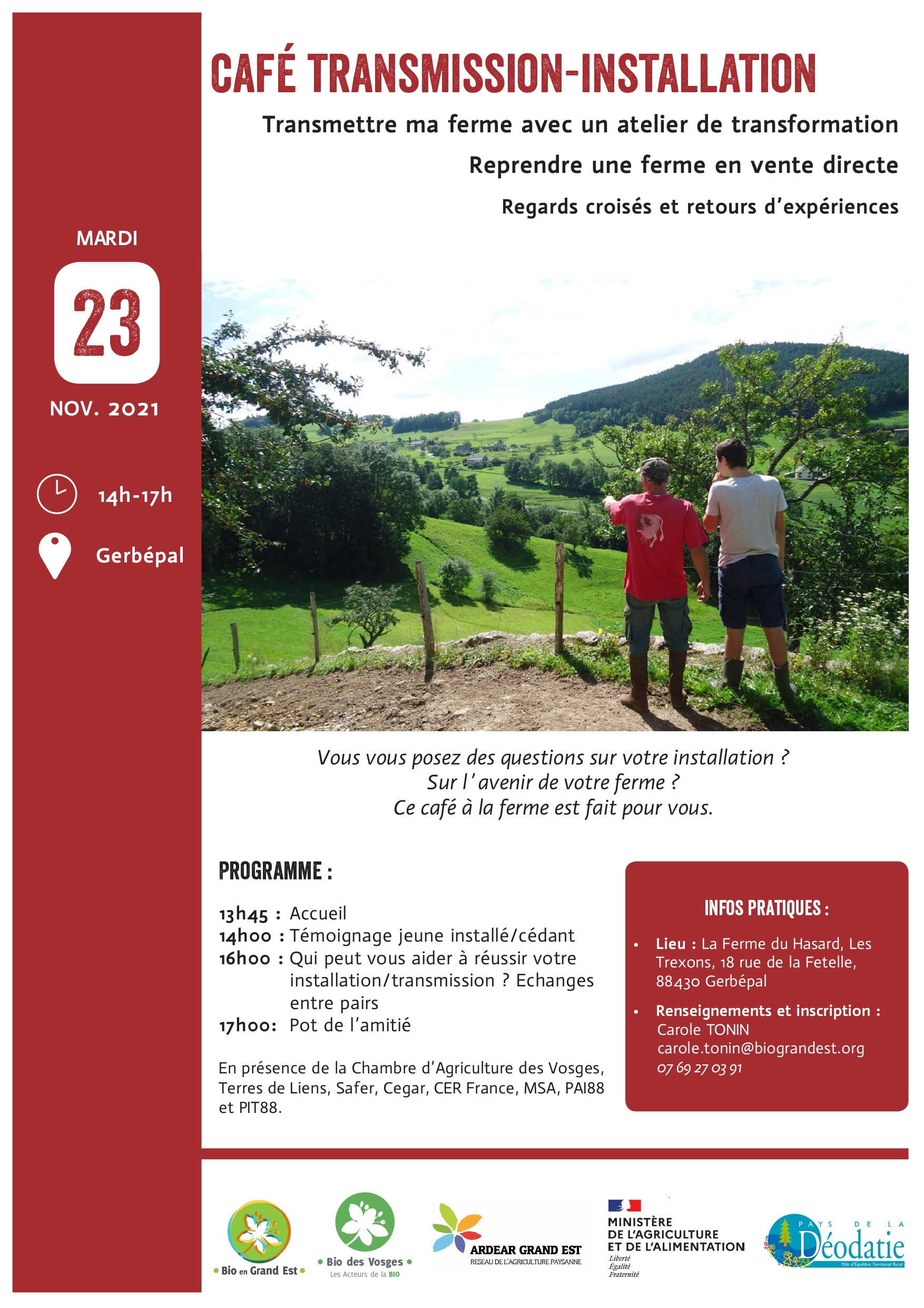 Témoignage jeune installé/cédant, présentation des structures d'accompagnement (présence de la Chambre d’Agriculture des Vosges, Terres de Liens, Safer, Cegar, CER France, MSA, PAI88