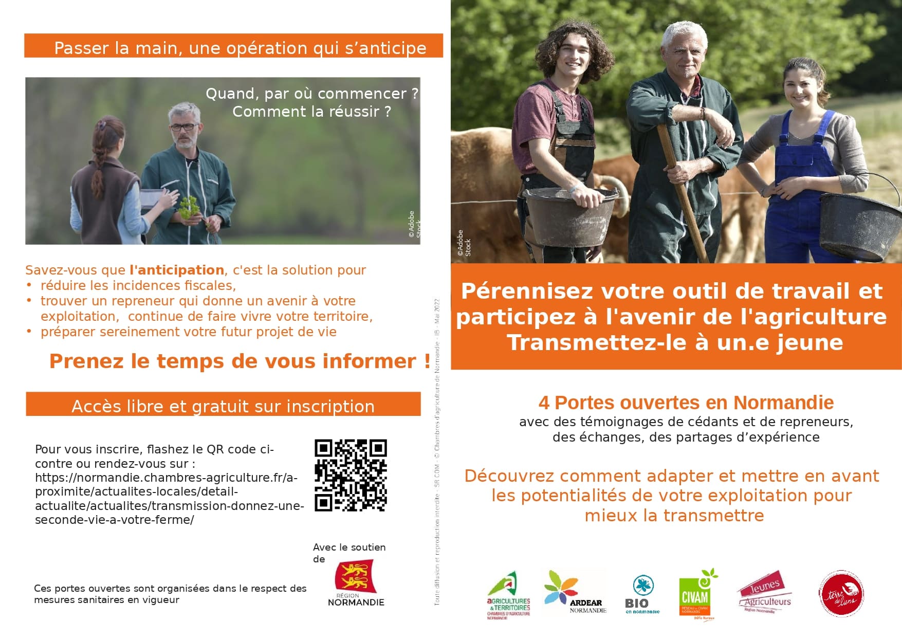 Passer la main : une opération qui s'anticipe ! Mais quand, comment, par où commencer ? Rendez-vous aux Portes ouvertes transmission, organisées ce printemps sur tout le territoire. Des temps d'échange, de témoignage privilégiées pour s'informer sur le sujet.