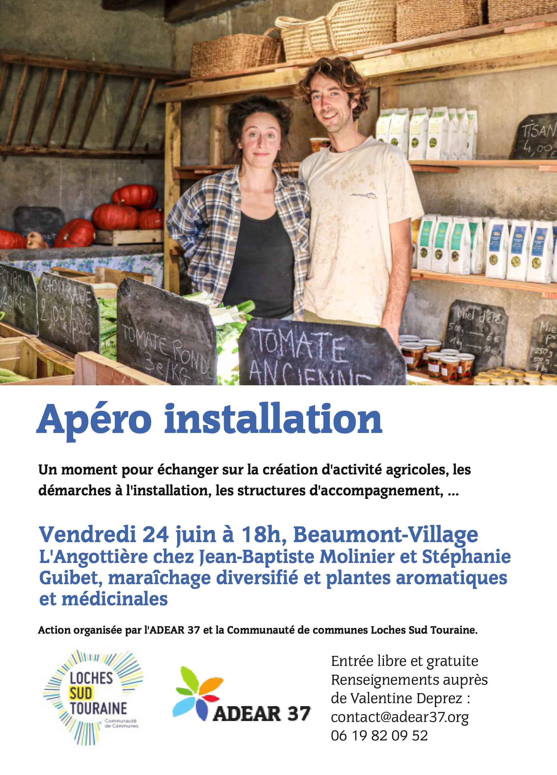 L'ADEAR 37 et la communauté de communes Loches Sud Touraine vous invitent à un apéro installation :