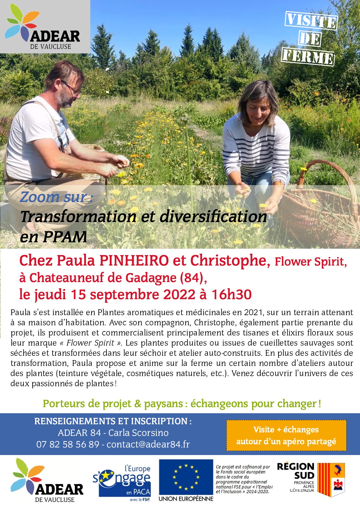 Paula s’est installée en Plantes aromatiques et médicinales en 2021, sur un terrain attenant à sa maison d’habitation. Avec son compagnon, Christophe, également partie prenante du projet, ils produisent et commercialisent principalement des tisanes et élixirs floraux sous leur marque « Flower Spirit ». Les plantes produites ou issues de cueillettes sauvages sont séchées et transformées dans leur séchoir et atelier auto-construits. En plus des activités de transformation, Paula propose et anime sur la ferme un certain nombre d’ateliers autour des plantes (teinture végétale, cosmétiques naturels, etc.). Venez découvrir l’univers de ces deux passionnés de plantes !