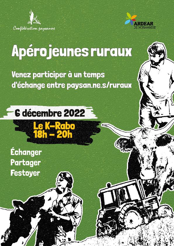 Jeunes paysans, installé.e.s ou en cours d'installation, la Confédération paysanne et l'ARDEAR t'invitent à des apéros jeunes qui auront lieu régulièrement en Normandie!