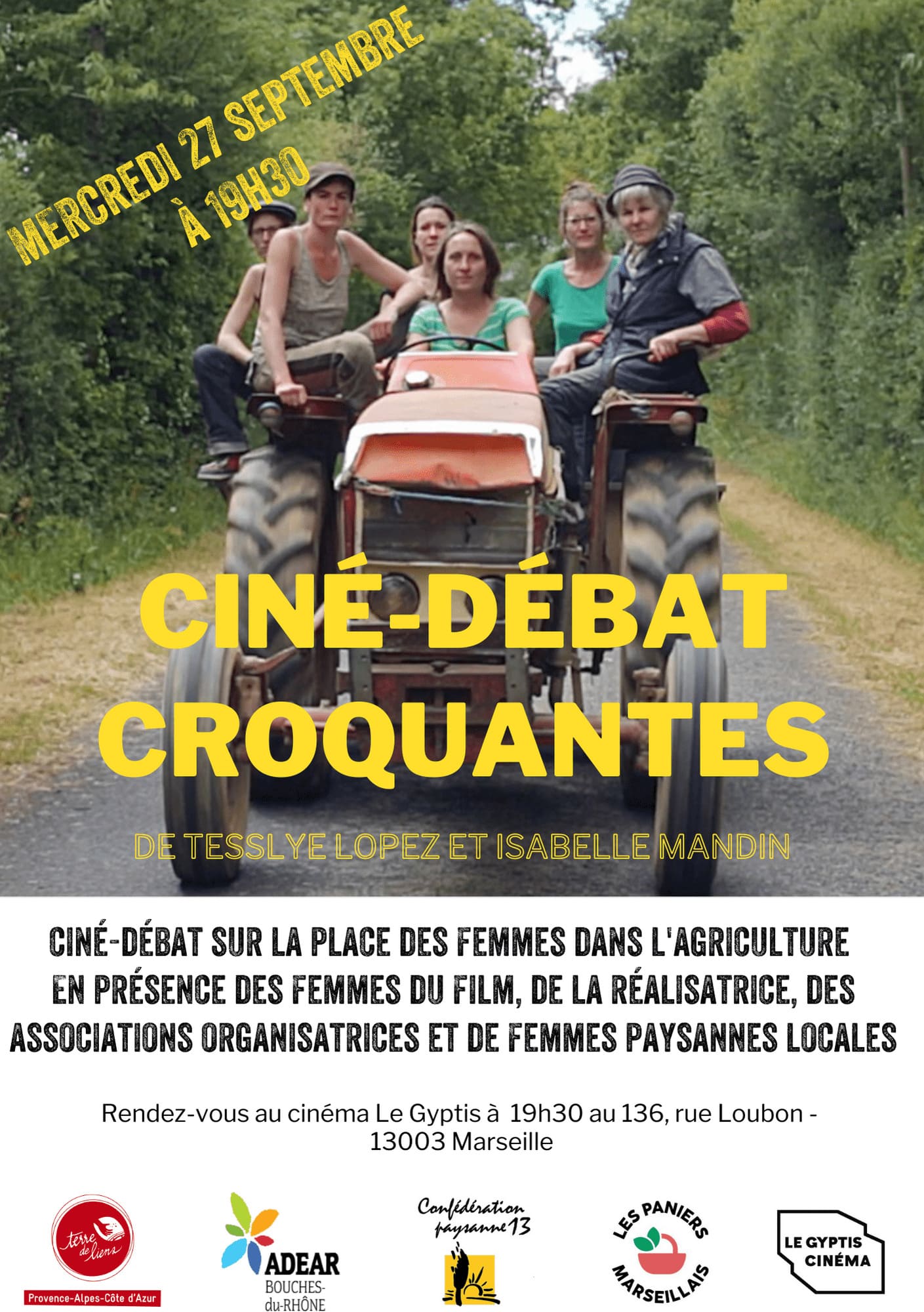 L'ADEAR 13 vous invite à la diffusion du film de Tesslye Lopez et Isabelle Mandin sur la place des femmes dans l'agriculture. Séance au Gyptis en présence de la réalisatrice, de femmes paysannes du réseau et des associations organisatrices.