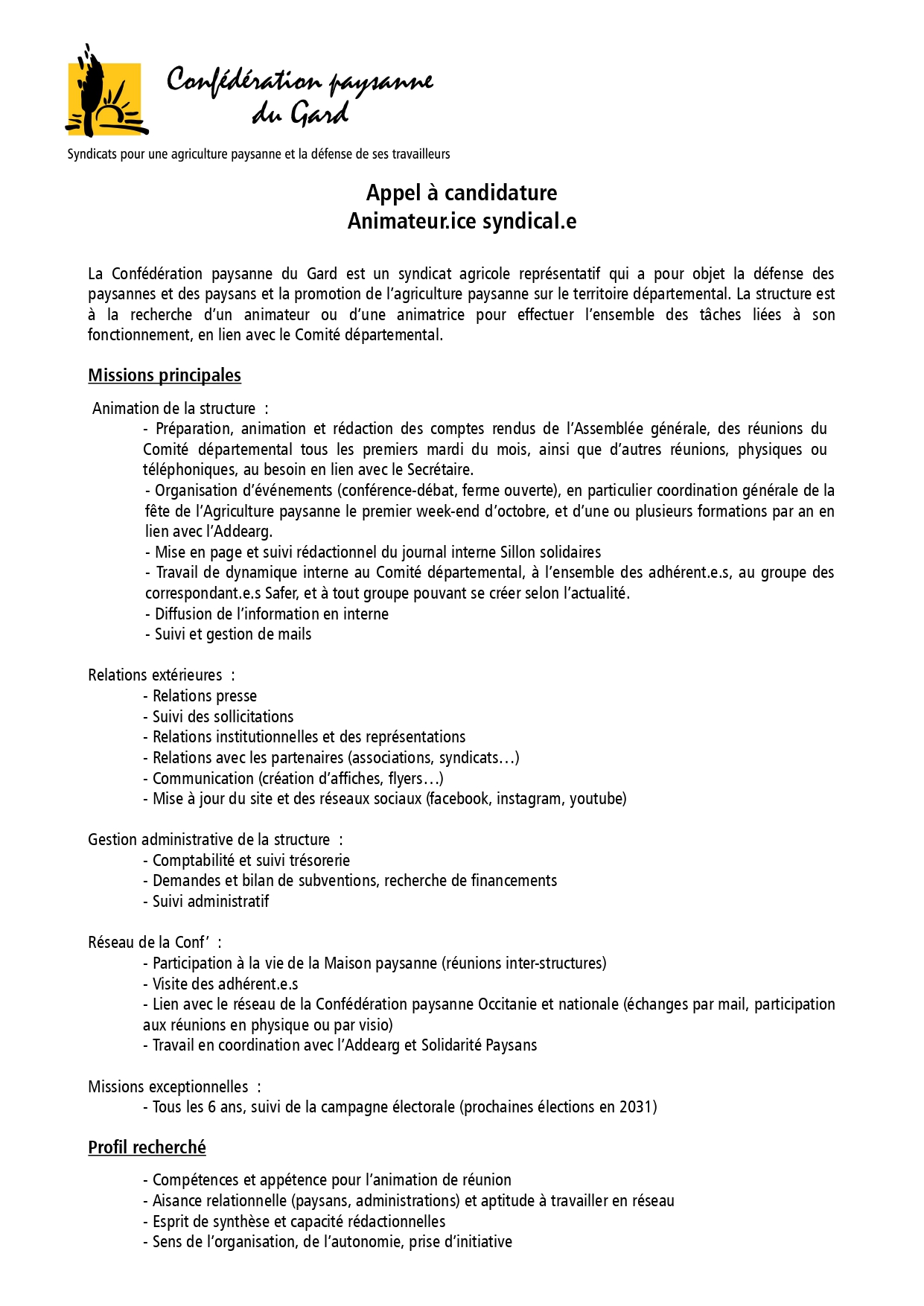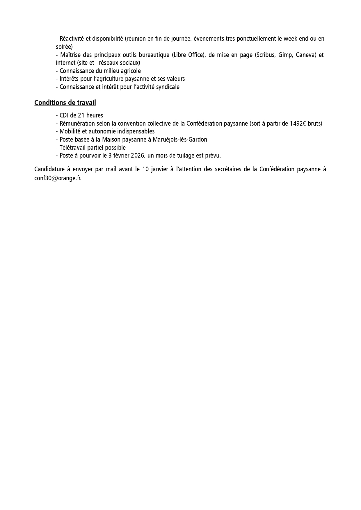 Poste de 21h/semaine, basé à Maruéjols-lès-Gardon, au sein de la Maison paysanne partagée avec l'Addearg et Solidarité paysans 30.