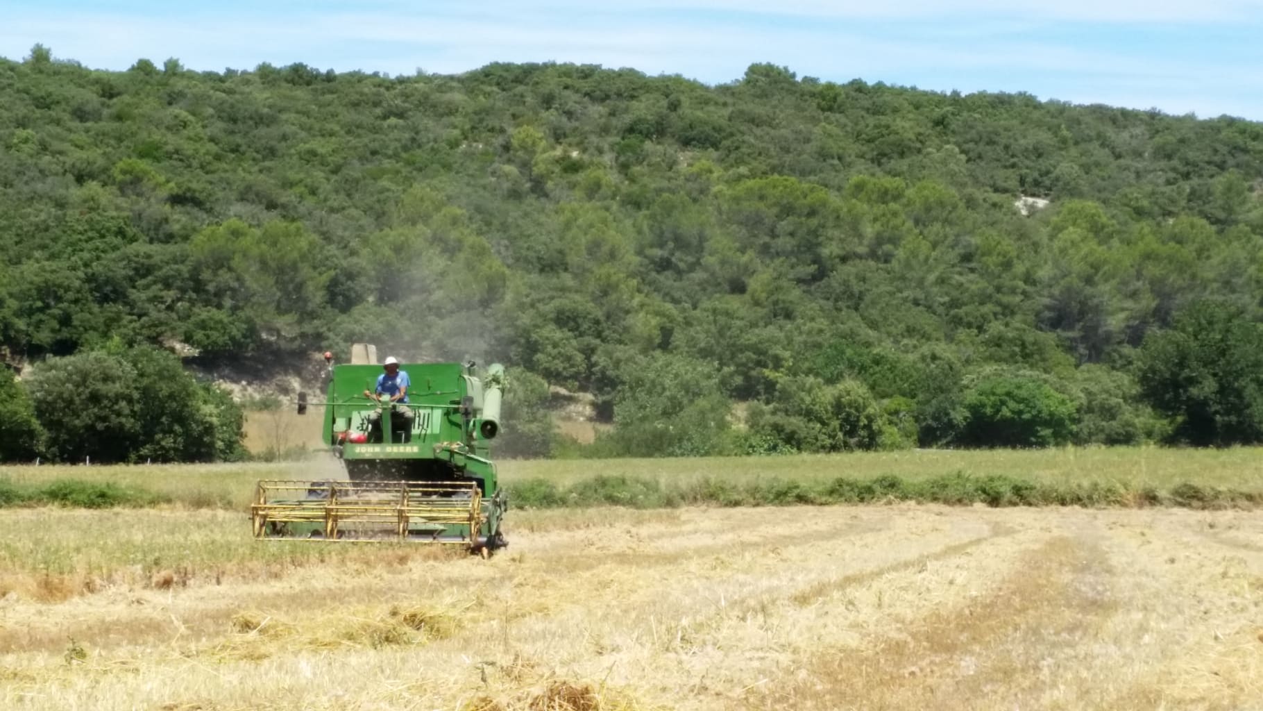 Matériel : Nous sommes équipé.es pour être quasi autonomes sur toutes les étapes de culture / tri / transformation sur les céréales : tracteurs, outils de travail du sol, semoir, moissonneuse, trieurs. Nous n’avons pas de matériel de vinification, mais l’ancienne cave pourrait être remise en marche (pressoir électro-hydraulique).