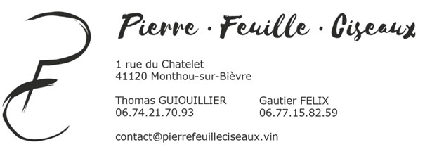 Pour plus de renseignements, contact@pierrefeuilleciseaux.vin ou
